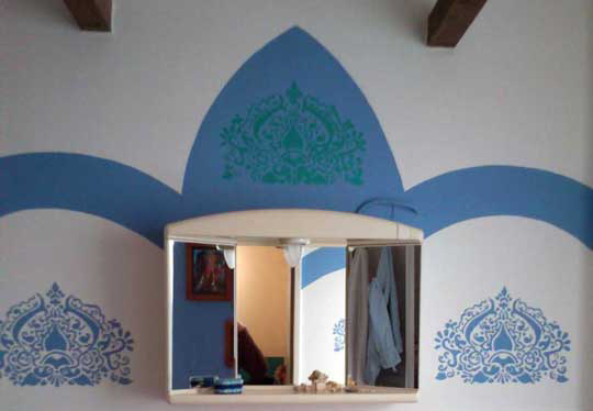 Komplette Raumgestaltungen, inklusive Innenarchitektur. Hierzu gehört die gesamte Gestaltung einer Fläche oder eines Raumes hinsichtlich ihrer Farben, Formen, dem Mobiliar und den zu verwendenen Werkstoffen, genauso wie die liebevolle Kinderzimmergestaltung passend zu einem Thema, z. B. Aquarium, Rennbahn, Märchenschloß.